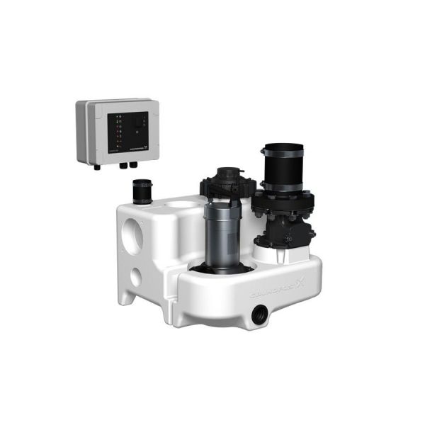Полностью готовые для монтажа установки с 1 или 2 насосами, накопительным резервуаром, шкафом управления, реле уровня (пневматическая труба, соединенная 4- или 10-м шлангом с пьезорезистивным датчиком в шкафу управления). Встроенный обратный клапан с устройством для отвода воздуха. Рабочее колесо свободно-вихревое. Свободный проход 50 мм. Кабель электродвигателя 4 или 10 м. Кабель шкафа управления со штекером 1,5 м.