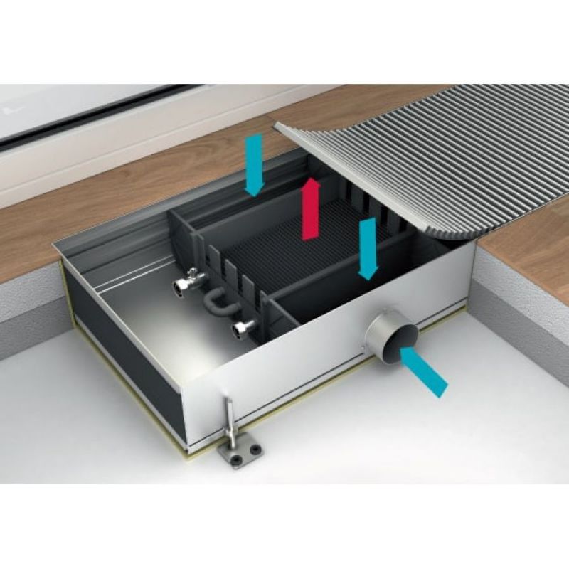 Внутрипольные конвекторы Mohlenhoff WLK служат для отопления и вентиляции помещения. При пониженной температуре первичного воздуха по отношению к комнатному воздуху возможно охлаждение помещения. Холодопроизводительность зависит от пониженной температуры и объема первичного воздуха. Благодаря чему обеспечивается эффективная полоса пропускания для индивидуального регулирования температуры в помещении. Подключения первичного воздуха возможно свободно выбирать в рамках модульной сетки. Вследствие чего осуществляется оптимальная адаптация к объему первичного воздуха (объем свежего воздуха). Благодаря концепции системы, внутрипольные конвекторы WLK универсальны и являют собой идеальное решение для любого дизайнерского требования и для практически любого помещения.