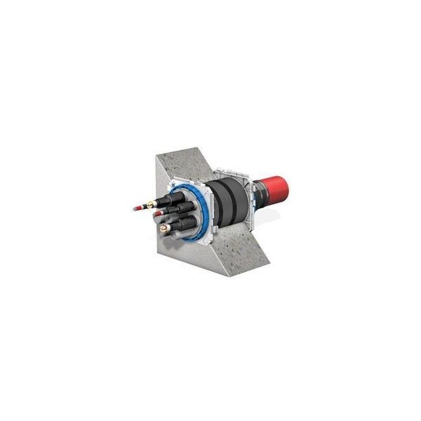 Кабельный ввод для монтажа в стене вставьте крышку системы с байонетным замком подходит для кабелей диаметром от 2 до 108 мм для подключения к защитным трубам диаметром до 160 мм Стандартная герметизация кабелей по технологии термоусадки совместим с другими распространенными системами Материал: экологически чистые и химически стойкие материалы