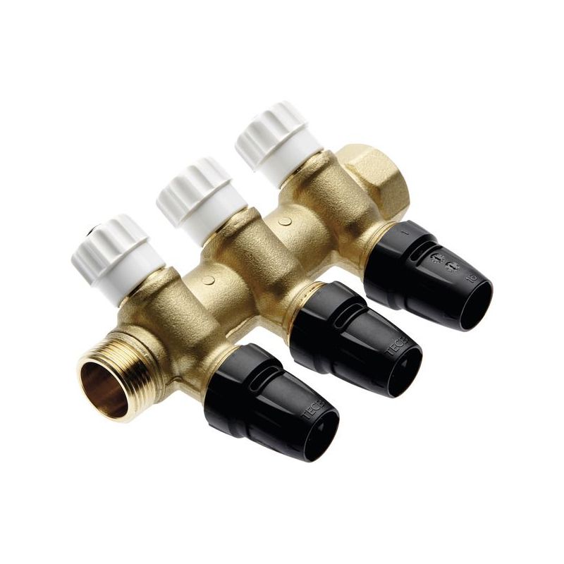 Коллектор TECE TECElogo-Push 2 контура, с запорными вентилями, размер 16, стандартная латунь.