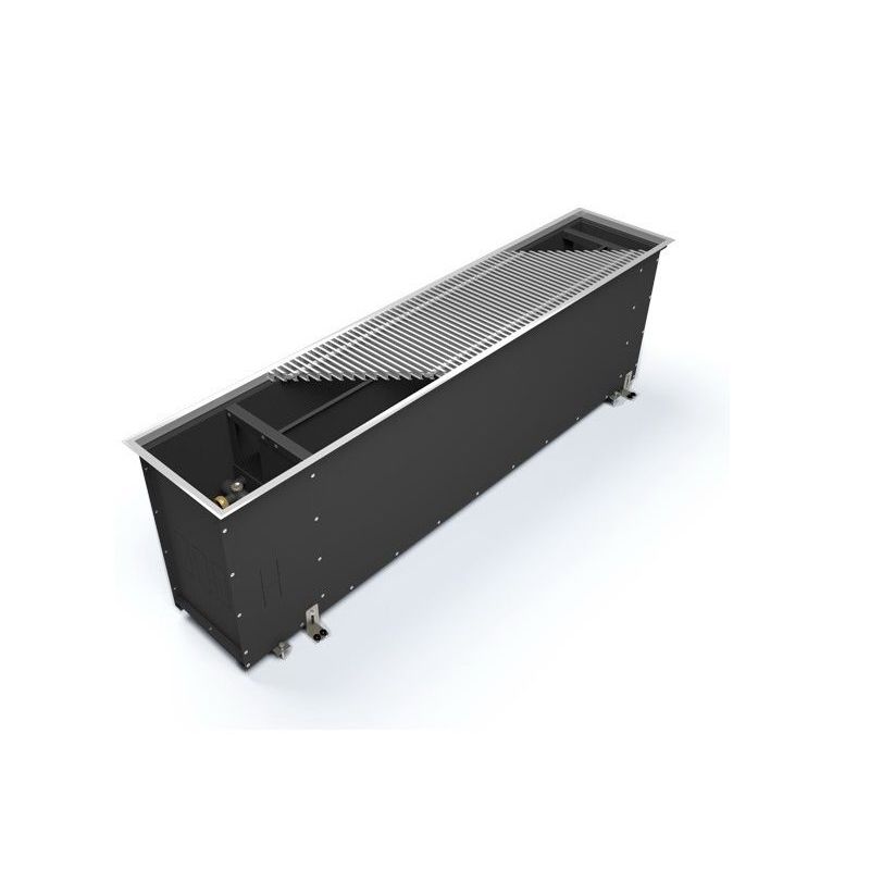 Встраиваемый в пол конвектор Varmann Ntherm Maxi NMR 370.300.800 RR U EV1, шириной 370 мм, высотой 300 мм, длиной 800 мм, решетка роликовая из алюминия, анодированная в натуральный алюминий, декоративная рамка из U-образного профиля, теплопроизводительность при температуре теплоносителя 90/70 °C, температуре в помещении 20 °C - 944 Вт. Масса нетто - 18.9 кг.