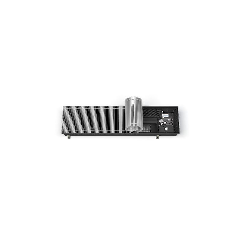 Встраиваемый в пол конвектор Varmann Qtherm Q 180.75.1800 RR U RAL9006, шириной 180 мм, высотой 75 мм, длиной 1800 мм, решетка роликовая из алюминия, окрашенная в цвет по RAL9006, декоративная рамка из U-образного профиля, вентиляторы с EC-двигателями 24В, микропроцессорное регулирование Vartronic с напряжением питания 220В, теплопроизводительность при скорости вращения вентиляторов n/n max - 80%, при температуре теплоносителя 90/70 °C, температуре в помещении 20 °C - 1554 Вт. Масса нетто - 17.7 кг.
