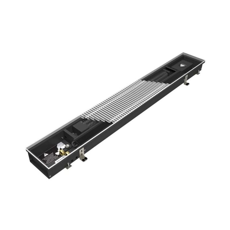 Встраиваемый в пол конвектор Varmann Qtherm Q 230.110.1500 RR F EV1, шириной 230 мм, высотой 110 мм, длиной 1500 мм, решетка роликовая из алюминия, анодированная в натуральный алюминий, декоративная рамка из F-образного профиля, вентиляторы с EC-двигателями 24В, микропроцессорное регулирование Vartronic с напряжением питания 220В, теплопроизводительность при скорости вращения вентиляторов n/n max - 80%, при температуре теплоносителя 90/70 °C, температуре в помещении 20 °C - 1870 Вт. Масса нетто - 17.9 кг.