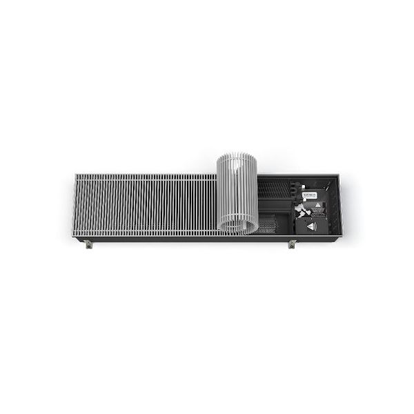 Встраиваемый в пол конвектор Varmann Qtherm Q_300.110.2500 RR U RAL7016, шириной 300 мм, высотой 110 мм, длиной 2500 мм, решетка роликовая из алюминия, окрашенная в цвет по RAL7016, декоративная рамка из U-образного профиля, вентиляторы с EC-двигателями 24В, микропроцессорное регулирование Vartronic с напряжением питания 220В, теплопроизводительность при скорости вращения вентиляторов n/n max - 80%, при температуре теплоносителя 90/70 °C, температуре в помещении 20 °C - 4133 Вт. Масса нетто - 35.6 кг.