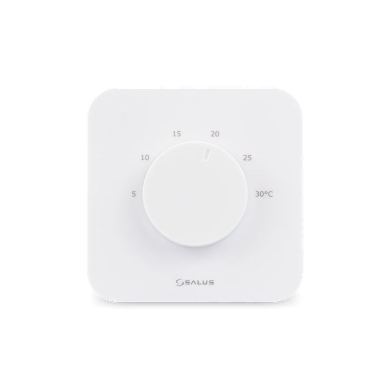 Проводной электронный непрограммируемый накладной термостат Salus с механическим диском управления с функцией NSB, белый, на 24 В.