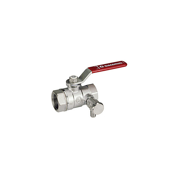 Giacomini Кран шаровой со сливом, резьба внутренняя/внутренняя, стандартный проход, хромированный, ручка - рычаг красный или жёлтый. Размер 1 1/2"
