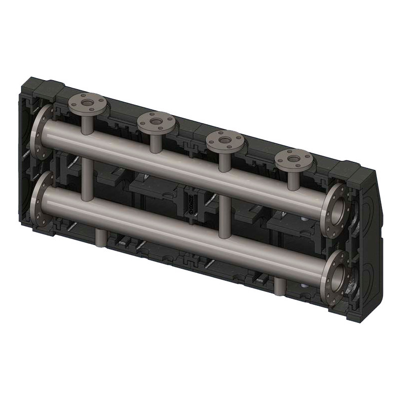 Распределительный коллектор Elsen DN 150 с фланцевыми отводами DN65, 2 контура, Q=33 м³/ч